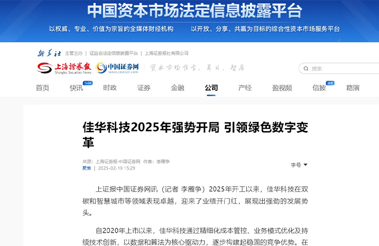 上海證券報 | 佳華科技2025年強勢開局 引領(lǐng)綠色數(shù)字變革